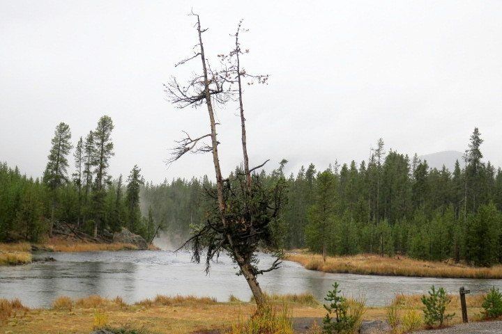 Wie vorhergesagt regnet es. Da für die nächsten Tage keine besseren Aussichten zu erwarten sind, gibt es halt Yellowstone im Regen.
