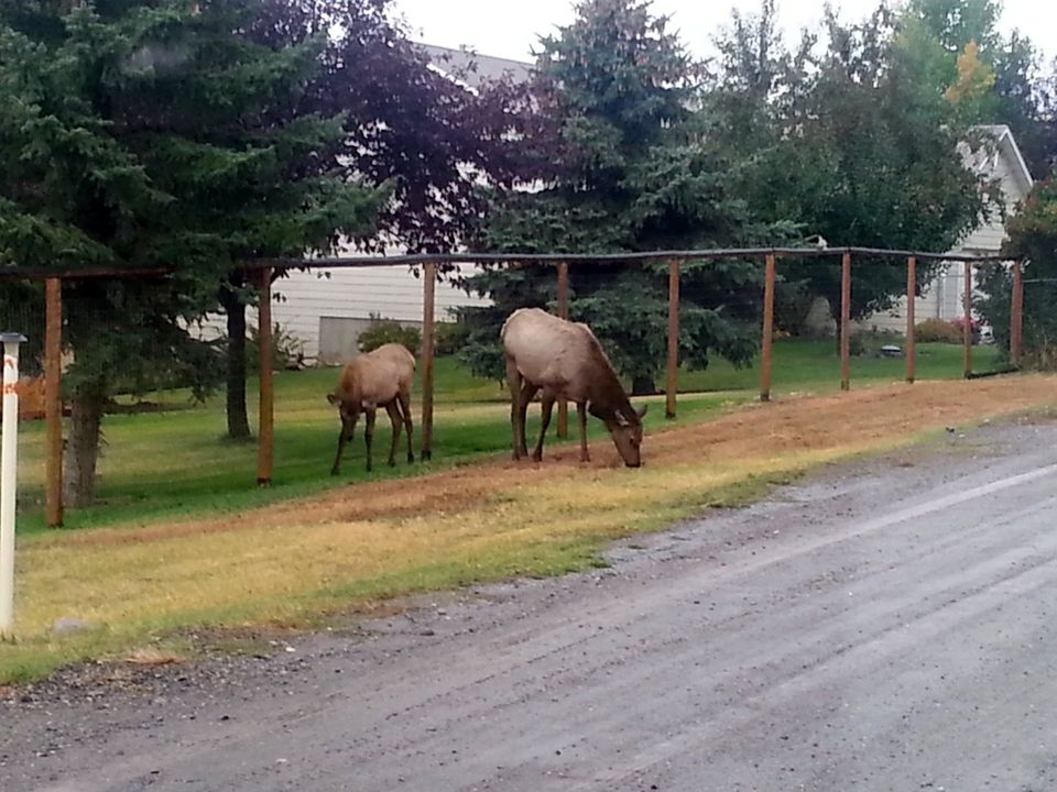 Wir verlassen den Park um in West Yellowstone einen Campingplatz zu finden. Es hat alles geschlossen. Es wird spät und ist bereits dunkel. So langsam verzweifeln wir. Auch weiter außerhalb hat alles geschlossen. An einem Hotel fragen wir nach, ob wir auf dem Parkplatz stehen dürfen. Dürfen wir für 25$. Aber der Herr verrät uns, dass nur 2km weiter ein Parkplatz ist, auf dem wir übernachten können und das kostenlos. Den nehmen wir.