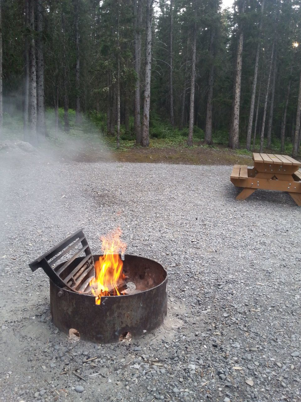 Seit Mittag halten wir nach einem Campingplatz Ausschau. Alles voll belegt. Den letzten möglichen Platz im Park verpatzt unser Navi, da es uns auf dem Highway sagt, dass wir das Ziel erreicht haben. Wir sehen den Platz auch, sind an der Auffahrt aber schon seit einer ganzen Weile vorbei. (Die Beschilderung ist auch nicht so toll). Uns bleibt nichts anderes übrig, als den Park zu verlassen und uns außerhalb einen Platz zu suchen. Wir finden einen kurz vor Hinton.